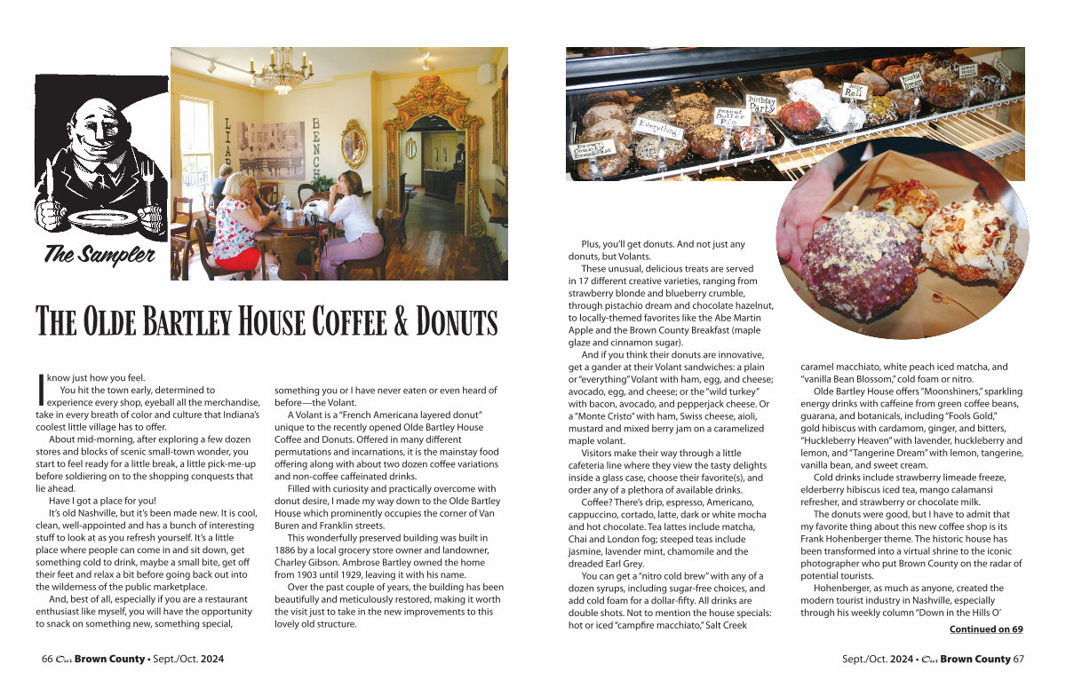 These unusual, delicious treats are served in 17 different creative varieties, ranging from strawberry blonde and blueberry crumble, through pistachio dream and chocolate hazelnut, to locally-themed favorites like the Abe Martin Apple and the Brown County Breakfast( maple glaze and cinnamon sugar).