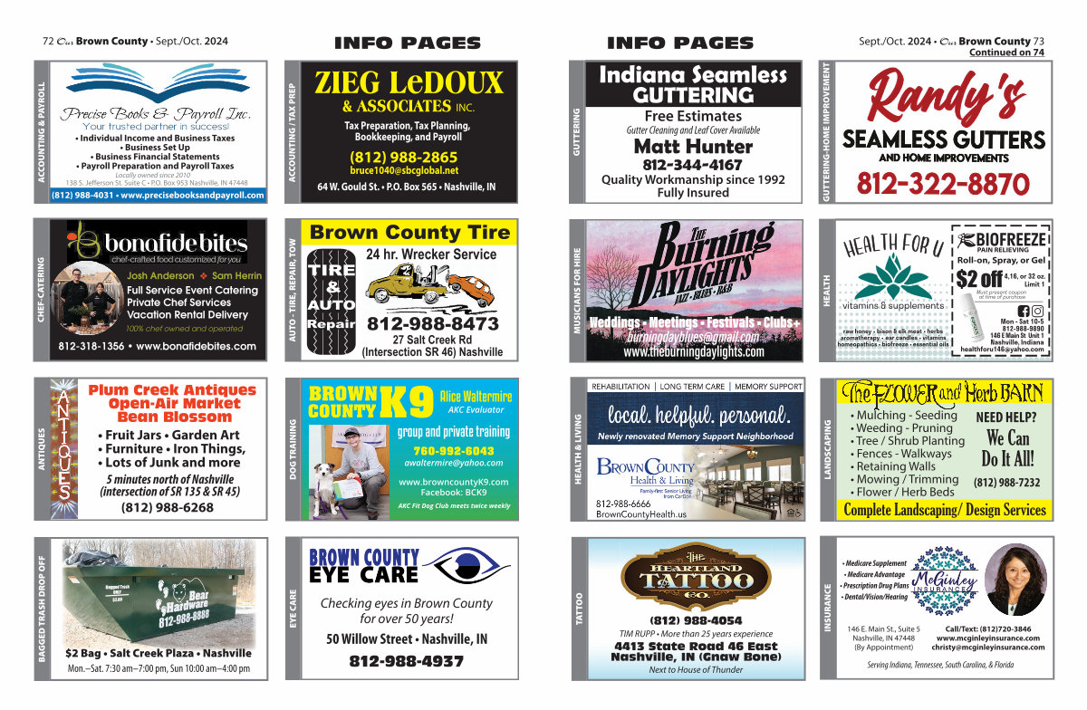• Payroll Preparation and Payroll Taxes Locally owned since 2010 138 S. Jefferson St. Suite C • P. O. Box 953 Nashville, IN 47448