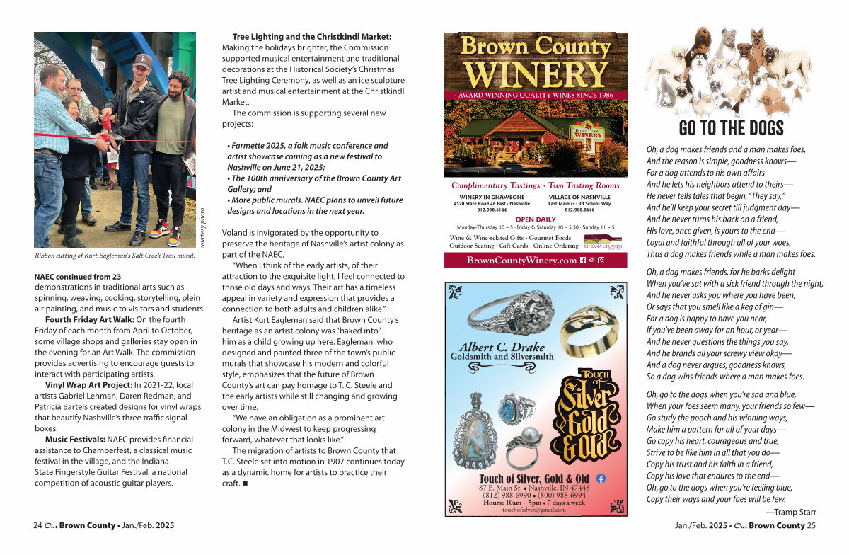 Jan./ Feb. 2025 • Our Brown County 25 Touch of Silver, Gold & Old 87 E. Main St. • Nashville, IN 47448( 812) 988-6990 •( 800) 988-6994 Hours: 10am – 5pm • 7 days a week touchofsilver @ gmail. com BrownCountyWinery. com Complimentary Tastings · Two Tasting Rooms WINERY IN GNAWBONE 4520 State Road 46 East · Nashville 812.988.6144 VILLAGE OF NASHVILLE East Main & Old School Way 812.988.8646 OPEN DAILY Monday-Thursday 10 – 5 · Friday & Saturday 10 – 5:30 · Sunday 11 – 5 Wine & Wine-related Gifts · Gourmet Foods Outdoor Seating · Gift Cards · Online Ordering Brown County Brown County Brown Co Brown County Brown County Brown County Brown County Brown County Brown County Brown County Brown County Brown County Brown County Brown County Brown County Brown County Brown County Brown County Brown County Brown County Brown County Brown County Brown County Brown County Brown County Brown County Brown County Brown County Brown County Brown County Brown County Brown County Brown County Brown County Brown County Brown County Brown County Brown County Brown County Brown County Brown County Brown County Brown County Brown County Brown County Brown County Brown County Brown County Brown County Brown County Brown County Brown County Brown County Brown County Brown County Brown County Brown County Brown County Brown County Brown County Brown County Brown County Brown County Brown County Brown County Brown County Brown County Brown County Brown County Brown County Brown County Brown County Brown County Brown County Brown County Brown County Brown County Brown County Brown County Brown County Brown County Brown County Brown County Brown County Brown County Brown County Brown County Brown County Brown County Brown County Brown County Brown County Brown County Brown County Brown County Brown County Brown County Brown County Brown County Brown County Brown County Brown County Brown County Brown County Brown County Brown County Brown County Brown County Brown County Brown County Brown County Brown County Brown County Brown County Brown County Brown County Brown County Brown County Brown County Brown County Brown County Brown County Brown County Brown County Brown County Brown County Brown County Brown County Brown County Brown County Brown County Brown County Brown County Brown County Brown County Brown County Brown County Brown County Brown County Brown County Brown County Brown County Brown County Brown County Brown County Brown County Brown County Brown County Brown County Brown County Brown County Brown County Brown County Brown County Brown County Brown County Brown County Brown County Brown County Brown County Brown County Brown County Brown County Brown County Brown County Brown County Brown County Brown County Brown County Brown County Brown County Brown County Brown County Brown County Brown County Brown County Brown County Brown County Brown County Brown County Brown County Brown County Brown County Brown County Brown County Brown County Brown County Brown County Brown County Brown County Brown County Brown County Brown County Brown County Brown County Brown County Brown County Brown County Brown County Brown County Brown County Brown County Brown County Brown County Brown County Brown County Brown County Brown County Brown County Brown County Brown County Brown County Brown County Brown County Brown County Brown County Brown County Brown County Brown County Brown County Brown County Brown County Brown County Brown County Brown County Brown County Brown County Brown County Brown County Brown County Brown County Brown County Brown County Brown County Brown County Brown County Brown County Brown County Brown County Brown County Brown County Brown County Brown County Brown County Brown County Brown County Brown County Brown County Brown County Brown County Brown County Brown County Brown County Brown County Brown County Brown County Brown County Brown County Brown County Brown County Brown County Brown County Brown County Brown County Brown County Brown County Brown County Brown County Brown County Brown County Brown County Brown County Brown County Brown County Brown County Brown County Brown County Brown County Brown County Brown County Brown County Brown County Brown County Brown County Brown County Brown County Brown County Brown County Brown County Brown County Brown County Brown County Brown County Brown County Brown County Brown County Brown County Brown County Brown County Brown County Brown County Brown County Brown County Brown County Brown County Brown County Brown County Brown County Brown County Brown County Brown County Brown County Brown County Brown County Brown County Brown County Brown County Brown County Brown County Brown County Brown County Brown County Brown County Brown County Brown County Brown County Brown County Brown County Brown County Brown County Brown County Brown County Brown County Brown County Brown County Brown County Brown County Brown County Brown County Brown County Brown County Brown County Brown County Brown County Brown County Brown County Brown County Brown County Brown County Brown County Brown County Brown County Brown County Brown County Brown County Brown County Brown County Brown County Brown County Brown County Brown County Brown County Brown County Brown County Brown County Brown County Brown County Brown County Brown County Brown County Brown County Brown County Brown County Brown County Brown County Brown County Brown County Brown County Brown County Brown County Brown County Brown County Brown County Brown County Brown County Brown County Brown County Brown County Brown County Brown County Brown County Brown County Brown County Brown County Brown County Brown County Brown County Brown County Brown County Brown County Brown County Brown County Brown County Brown County Brown County Brown County Brown County Brown County Brown County Brown County Brown County Brown County Brown County Brown County Brown County Brown County Brown County 