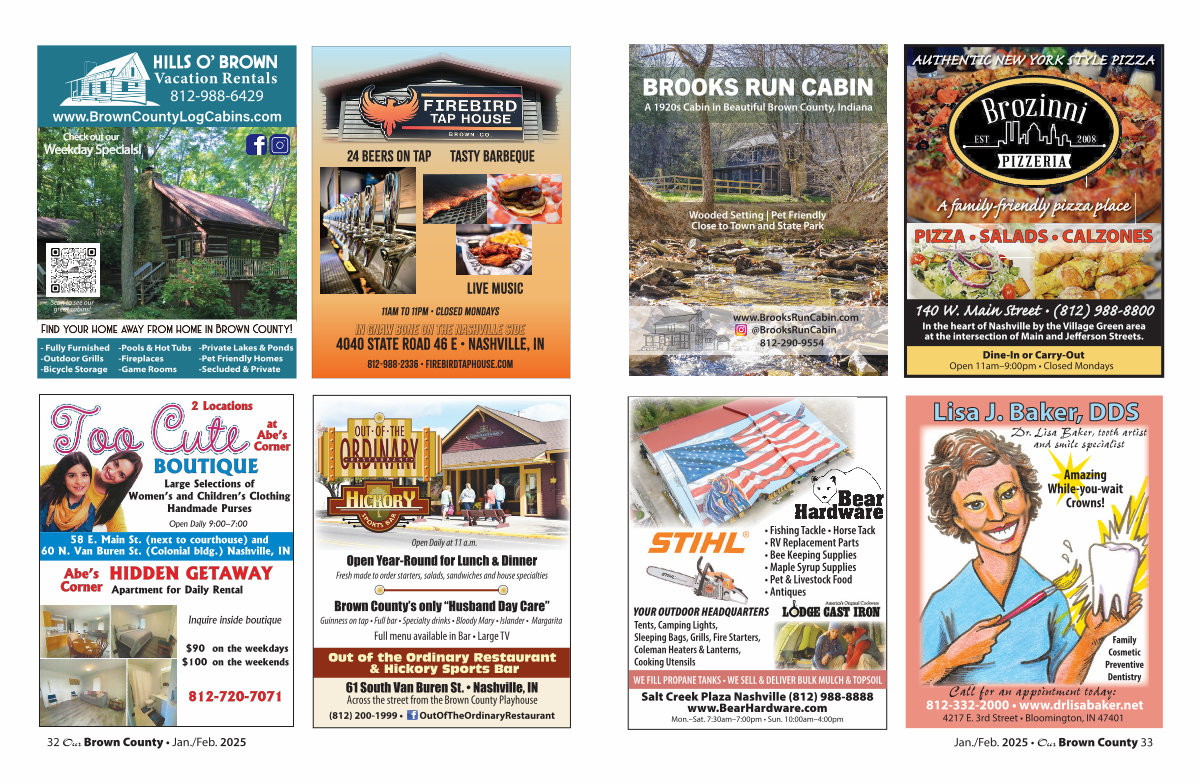 WE FILL PROPANE TANKS • WE SELL & DELIVER BULK MULCH & TOPSOIL Salt Creek Plaza Nashville( 812) 988-8888 www. BearHardware. com Mon.– Sat. 7:30am – 7:00pm • Sun. 10:00am – 4:00pm