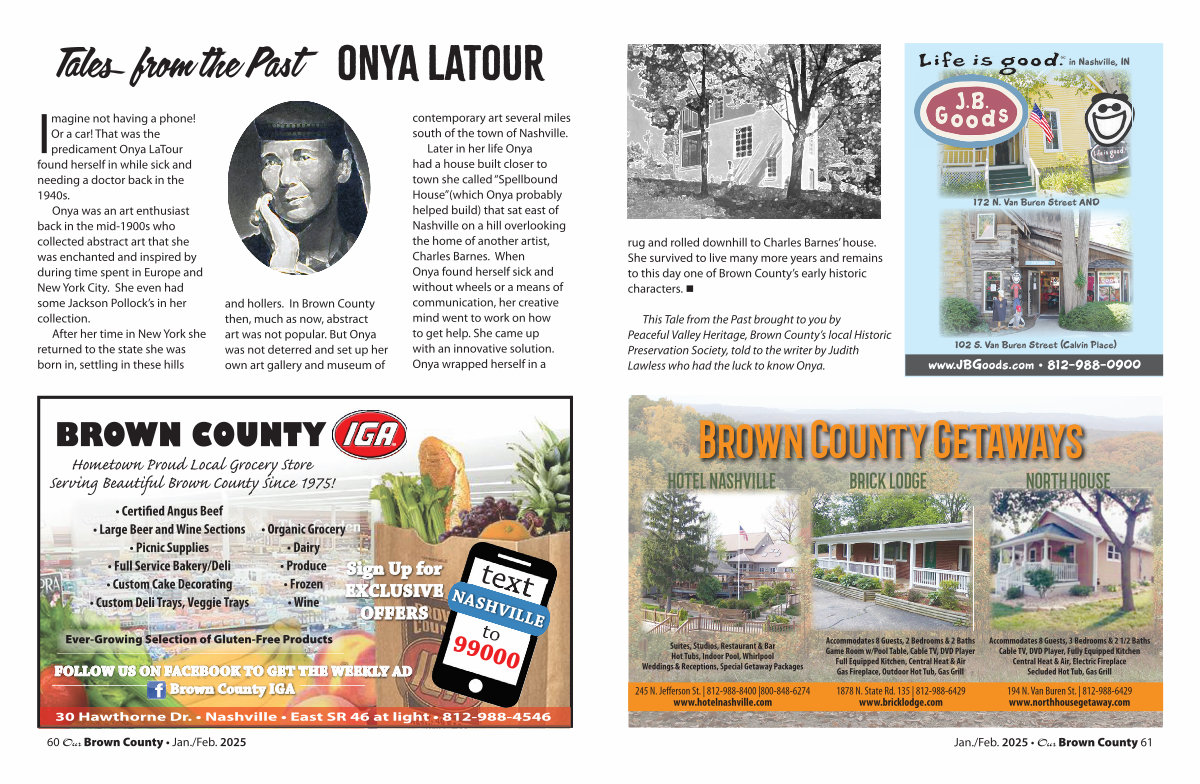 30 Hawthorne Dr. • Nashville • East SR 46 at light • 812-988-4546 60 Our Brown County • Jan./ Feb. 2025