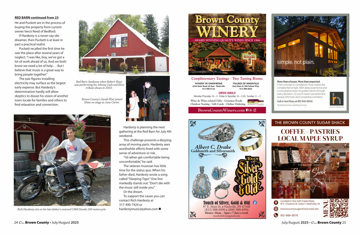 July / August 2025 • Our Brown County 25 Touch of Silver, Gold & Old 87 E. Main St. • Nashville, IN 47448( 812) 988-6990 •( 800) 988-6994 Hours: 10am – 5pm • 7 days a week touchofsilver @ gmail. com BrownCountyWinery. com Complimentary Tastings · Two Tasting Rooms WINERY IN GNAWBONE 4520 State Road 46 East · Nashville 812.988.6144 VILLAGE OF NASHVILLE East Main & Old School Way 812.988.8646 OPEN DAILY Monday-Thursday 10 – 5 · Friday & Saturday 10 – 5:30 · Sunday 11 – 5 Wine & Wine-related Gifts · Gourmet Foods Outdoor Seating · Gift Cards · Online Ordering Brown County Brown County Brown Co Brown County Brown County Brown County Brown County Brown County Brown County Brown County Brown County Brown County Brown County Brown County Brown County Brown County Brown County Brown County Brown County Brown County Brown County Brown County Brown County Brown County Brown County Brown County Brown County Brown County Brown County Brown County Brown County Brown County Brown County Brown County Brown County Brown County Brown County Brown County Brown County Brown County Brown County Brown County Brown County Brown County Brown County Brown County Brown County Brown County Brown County Brown County Brown County Brown County Brown County Brown County Brown County Brown County Brown County Brown County Brown County Brown County Brown County Brown County Brown County Brown County Brown County Brown County Brown County Brown County Brown County Brown County Brown County Brown County Brown County Brown County Brown County Brown County Brown County Brown County Brown County Brown County Brown County Brown County Brown County Brown County Brown County Brown County Brown County Brown County Brown County Brown County Brown County Brown County Brown County Brown County Brown County Brown County Brown County Brown County Brown County Brown County Brown County Brown County Brown County Brown County Brown County Brown County Brown County Brown County Brown County Brown County Brown County Brown County Brown County Brown County Brown County Brown County Brown County Brown County Brown County Brown County Brown County Brown County Brown County Brown County Brown County Brown County Brown County Brown County Brown County Brown County Brown County Brown County Brown County Brown County Brown County Brown County Brown County Brown County Brown County Brown County Brown County Brown County Brown County Brown County Brown County Brown County Brown County Brown County Brown County Brown County Brown County Brown County Brown County Brown County Brown County Brown County Brown County Brown County Brown County Brown County Brown County Brown County Brown County Brown County Brown County Brown County Brown County Brown County Brown County Brown County Brown County Brown County Brown County Brown County Brown County Brown County Brown County Brown County Brown County Brown County Brown County Brown County Brown County Brown County Brown County Brown County Brown County Brown County Brown County Brown County Brown County Brown County Brown County Brown County Brown County Brown County Brown County Brown County Brown County Brown County Brown County Brown County Brown County Brown County Brown County Brown County Brown County Brown County Brown County Brown County Brown County Brown County Brown County Brown County Brown County Brown County Brown County Brown County Brown County Brown County Brown County Brown County Brown County Brown County Brown County Brown County Brown County Brown County Brown County Brown County Brown County Brown County Brown County Brown County Brown County Brown County Brown County Brown County Brown County Brown County Brown County Brown County Brown County Brown County Brown County Brown County Brown County Brown County Brown County Brown County Brown County Brown County Brown County Brown County Brown County Brown County Brown County Brown County Brown County Brown County Brown County Brown County Brown County Brown County Brown County Brown County Brown County Brown County Brown County Brown County Brown County Brown County Brown County Brown County Brown County Brown County Brown County Brown County Brown County Brown County Brown County Brown County Brown County Brown County Brown County Brown County Brown County Brown County Brown County Brown County Brown County Brown County Brown County Brown County Brown County Brown County Brown County Brown County Brown County Brown County Brown County Brown County Brown County Brown County Brown County Brown County Brown County Brown County Brown County Brown County Brown County Brown County Brown County Brown County Brown County Brown County Brown County Brown County Brown County Brown County Brown County Brown County Brown County Brown County Brown County Brown County Brown County Brown County Brown County Brown County Brown County Brown County Brown County Brown County Brown County Brown County Brown County Brown County Brown County Brown County Brown County Brown County Brown County Brown County Brown County Brown County Brown County Brown County Brown County Brown County Brown County Brown County Brown County Brown County Brown County Brown County Brown County Brown County Brown County Brown County Brown County Brown County Brown County Brown County Brown County Brown County Brown County Brown County Brown County Brown County Brown County Brown County Brown County Brown County Brown County Brown County Brown County Brown County Brown County Brown County Brown County Brown County Brown County Brown County Brown County Brown County Brown County Brown County Brown County Brown County Brown County Brown County Brown County Brown County Brown County Brown County Brown County Brown County Brown County Brown County Brown County Brown County Brown County Brown County Brown County Brown County Brown County Brown County Brown County Brown County Brown County Brown County Brown County Brown County Brown County Brown County Brown Coun