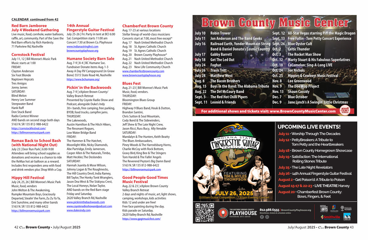For additional shows and tickets visit: www. BrownCountyMusicCenter. com | |||