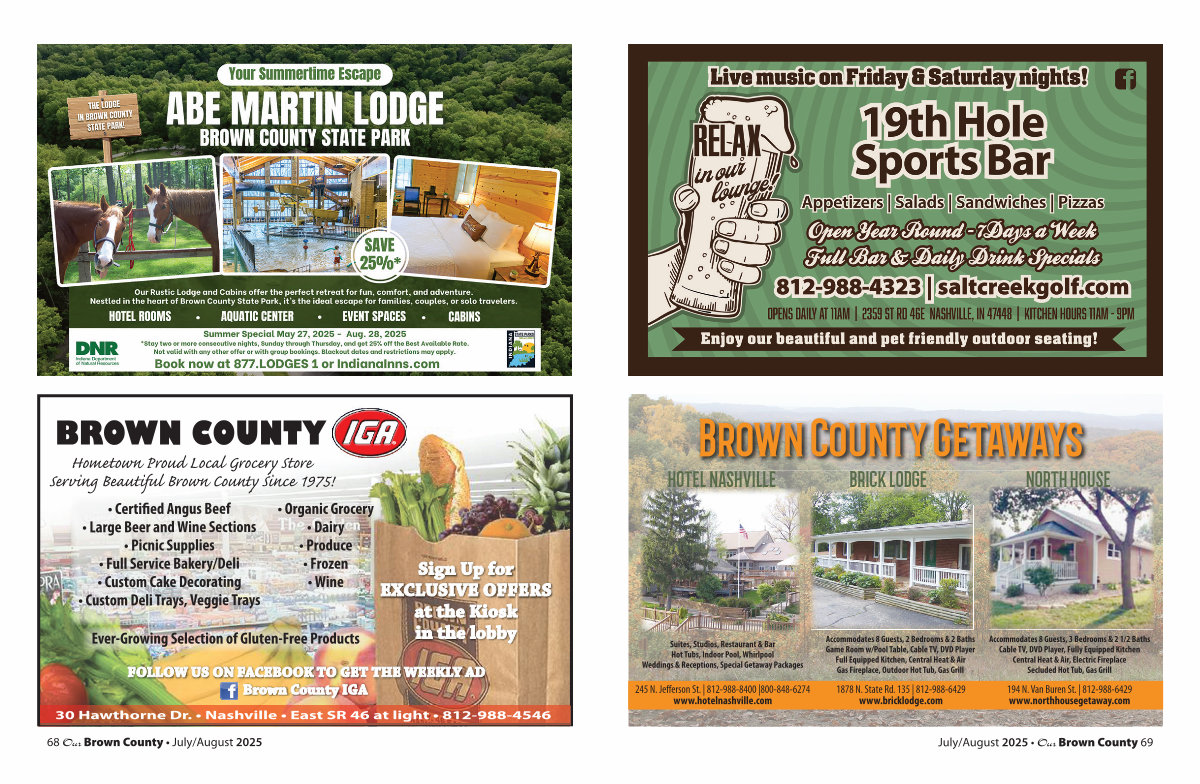 30 Hawthorne Dr. • Nashville • East SR 46 at light • 812-988-4546 68 Our Brown County • July / August 2025