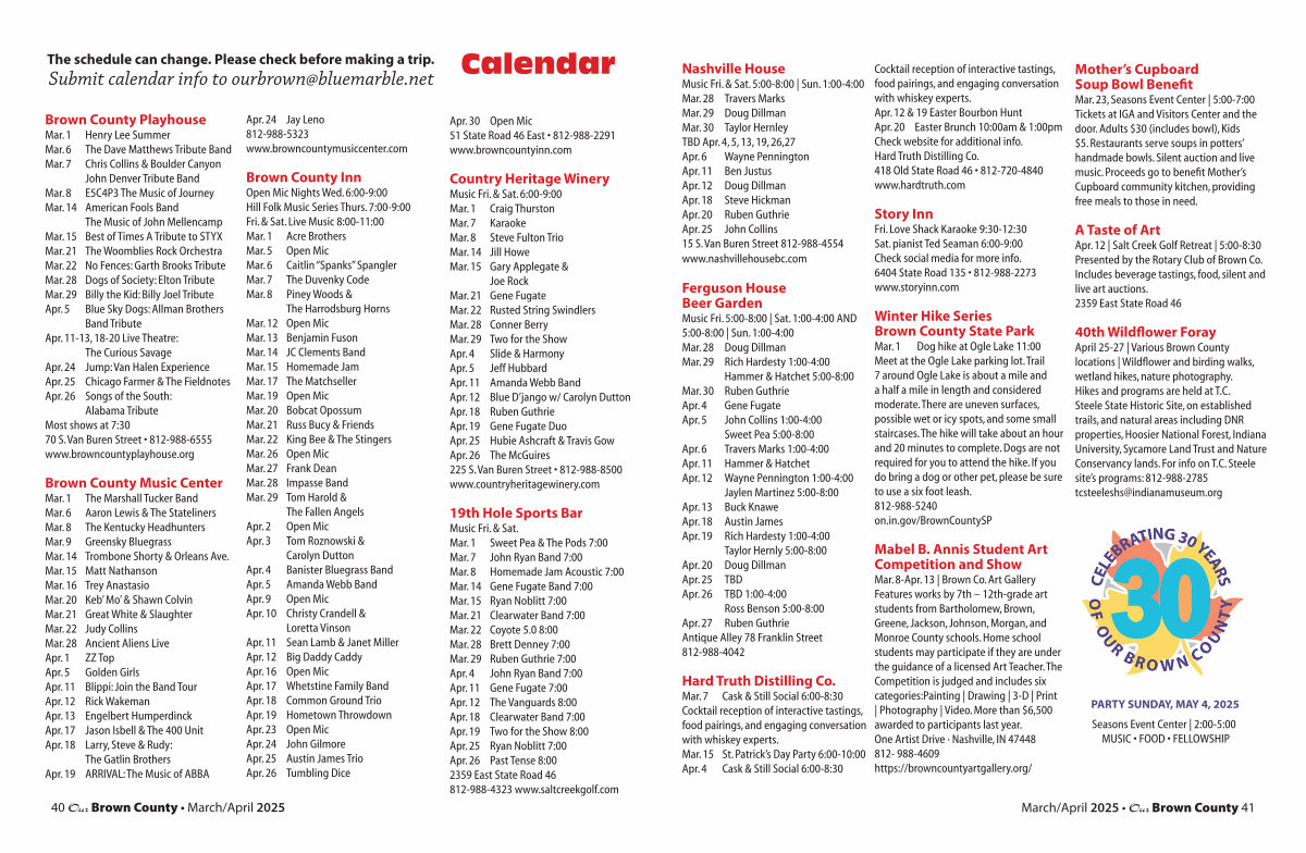 Apr. 30 Open Mic 51 State Road 46 East • 812-988-2291 www. browncountyinn. com