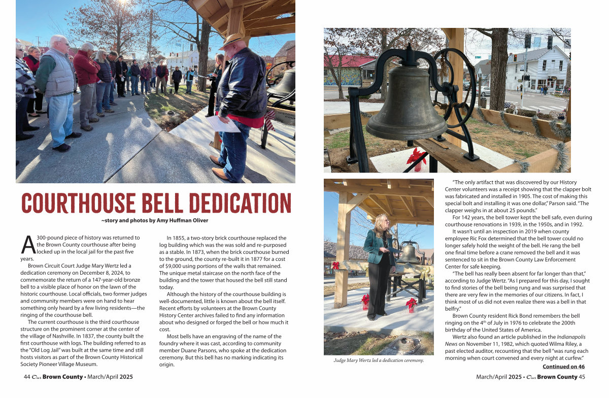 Brown Circuit Court Judge Mary Wertz led a dedication ceremony on December 8, 2024, to commemorate the return of a 147-year-old bronze bell to a visible place of honor on the lawn of the historic courthouse. Local officials, two former judges and community members were on hand to hear something only heard by a few living residents— the ringing of the courthouse bell.