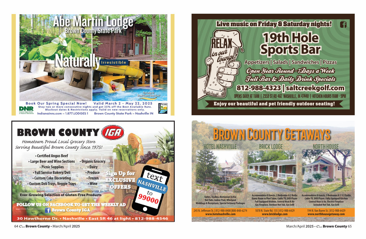 30 Hawthorne Dr. • Nashville • East SR 46 at light • 812-988-4546 64 Our Brown County • March / April 2025