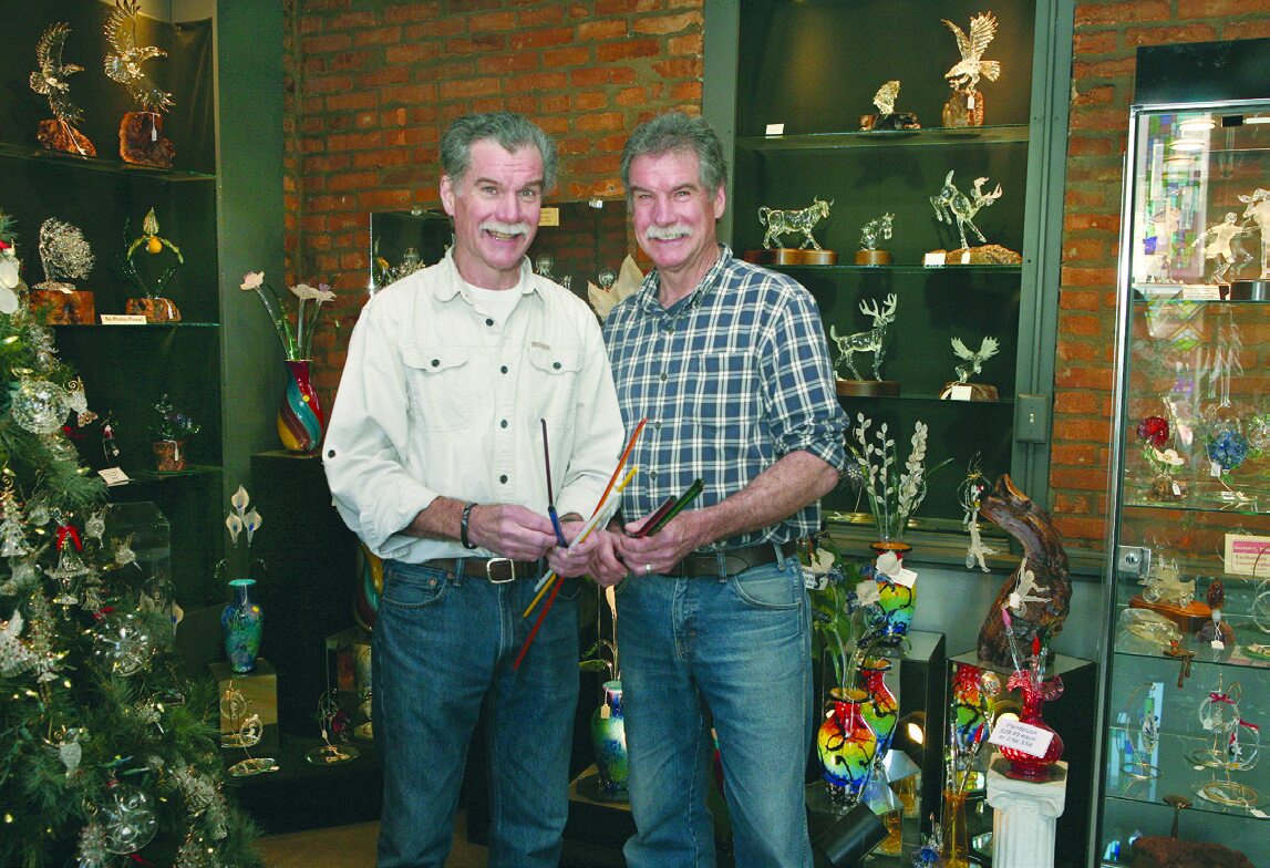Still performers at heart, the brothers handily craft breathtaking art seemingly effortlessly, while teasing crowds with banter that their twin is “the ugly one,” who is only “kept around for spare parts.” Jim said the business has brought an unimaginable amount of fun over the past 58 years. He laughed, remembering a story from years ago, when one of John’s customers was dismayed to learn he was not in the store that day. Without missing a beat, Jim changed into one of his brother’s shirts in the back room and reemerged in character as John. And, of course, he made the sale.