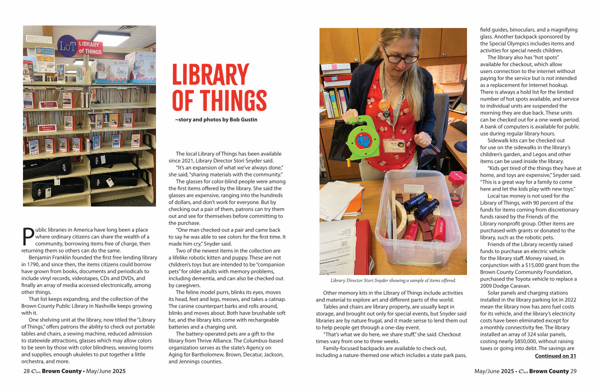 “ Kids get tired of the things they have at home, and toys are expensive,” Snyder said.“ This is a great way for a family to come here and let the kids play with new toys.” Local tax money is not used for the Library of Things, with 90 percent of the funds for items coming from discretionary funds raised by the Friends of the Library nonprofit group. Other items are purchased with grants or donated to the library, such as the robotic pets.