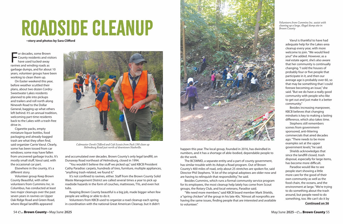 For decades, some Brown County residents and visitors have used tucked-away ravines and winding roads as garbage dumps, and for about 10 years, volunteer groups have been working to clean them up.