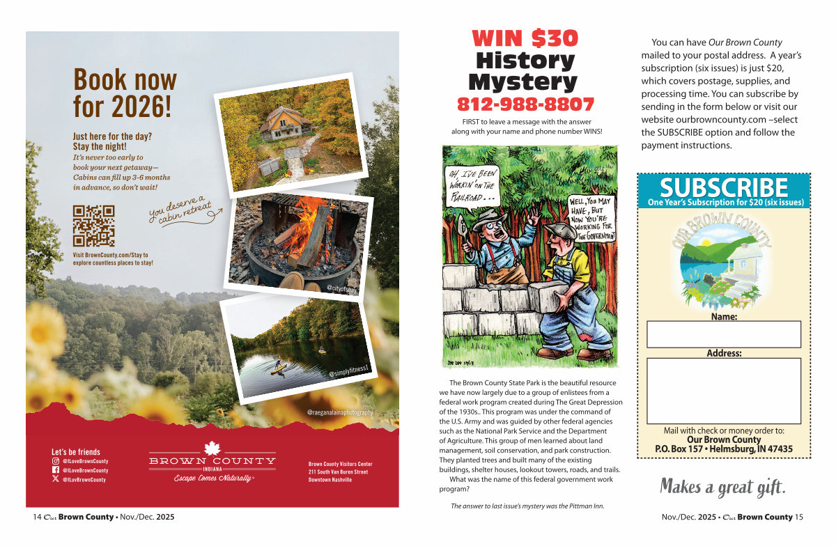 Visit BrownCounty. com / Stay to explore countless places to stay!