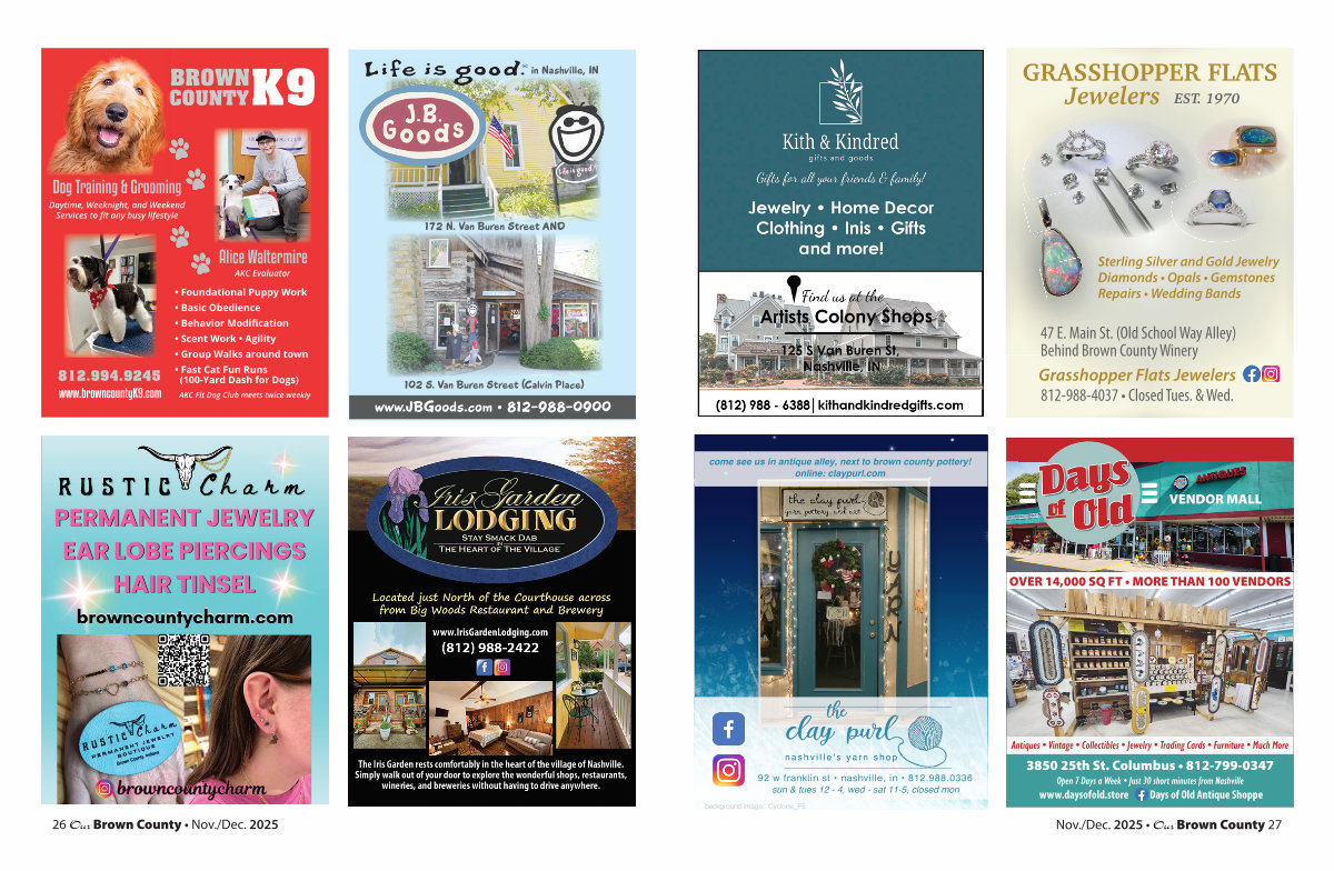 92 w franklin st • nashville, in • 812.988.0336 sun & tues 12- 4, wed- sat 11-5, closed mon