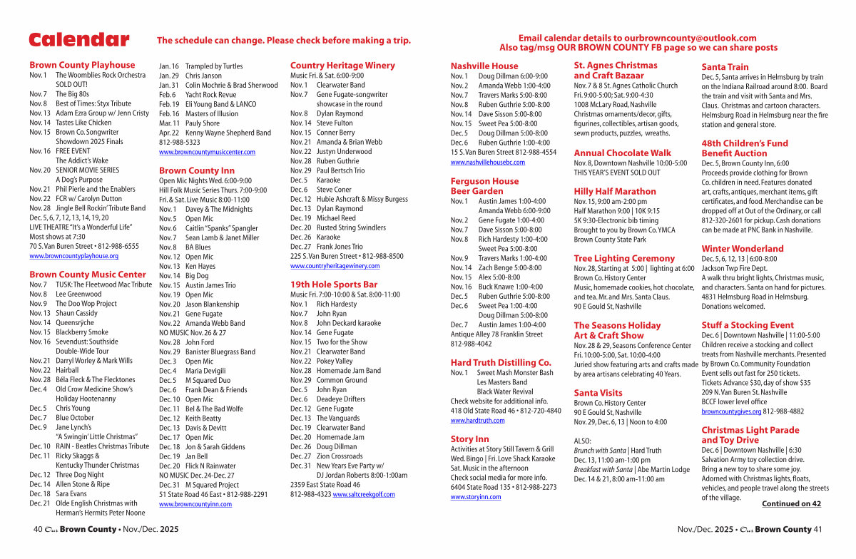 Email calendar details to ourbrowncounty @ outlook. com Also tag / msg OUR BROWN COUNTY FB page so we can share posts