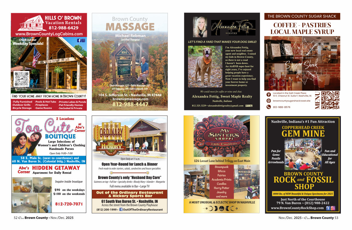 Located in the Salt Creek Plaza 51 E. Chesnut St. Suite F, Nashville, IN