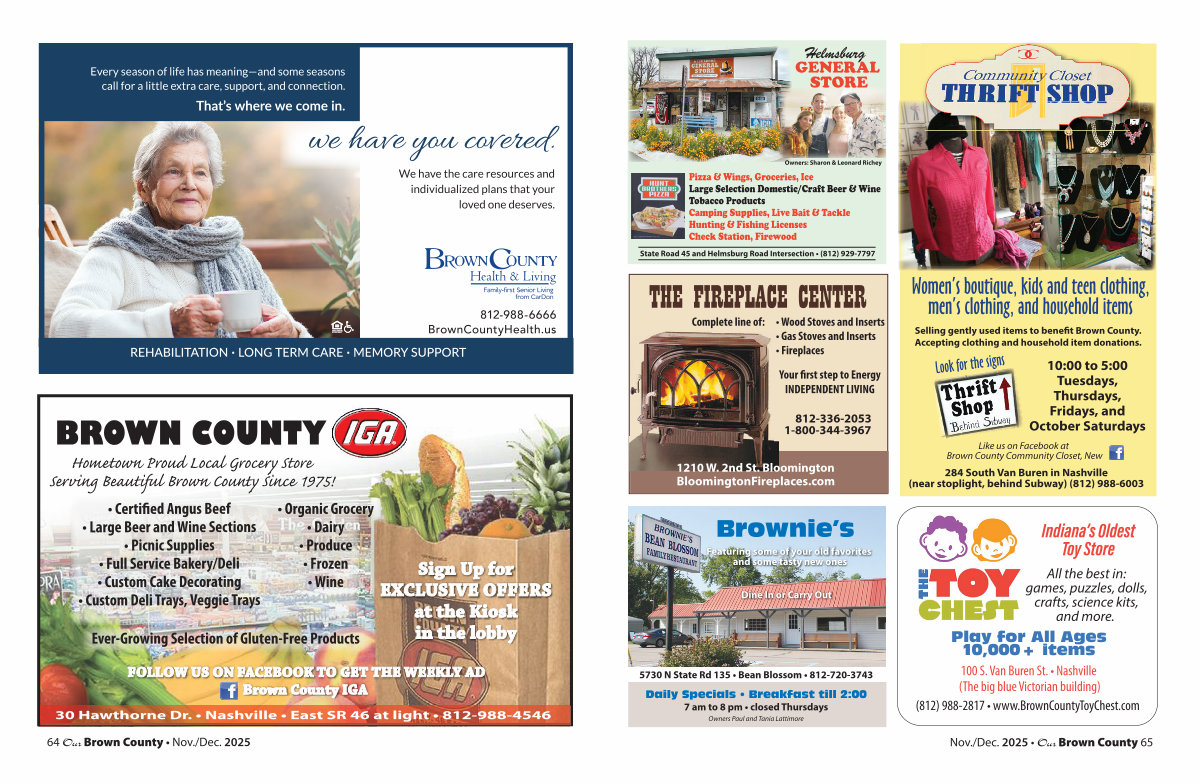 30 Hawthorne Dr. • Nashville • East SR 46 at light • 812-988-4546 64 Our Brown County • Nov./ Dec. 2025