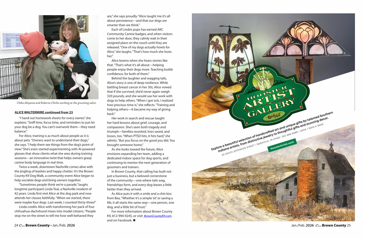 24 Our Brown County • Jan./ Feb. 2026 are,” she says proudly.“ Alice taught me it’ s all about persistence— and that our dogs are smarter than we think.”