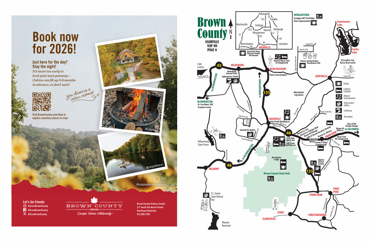 Visit BrownCounty. com / Stay to explore countless places to stay!