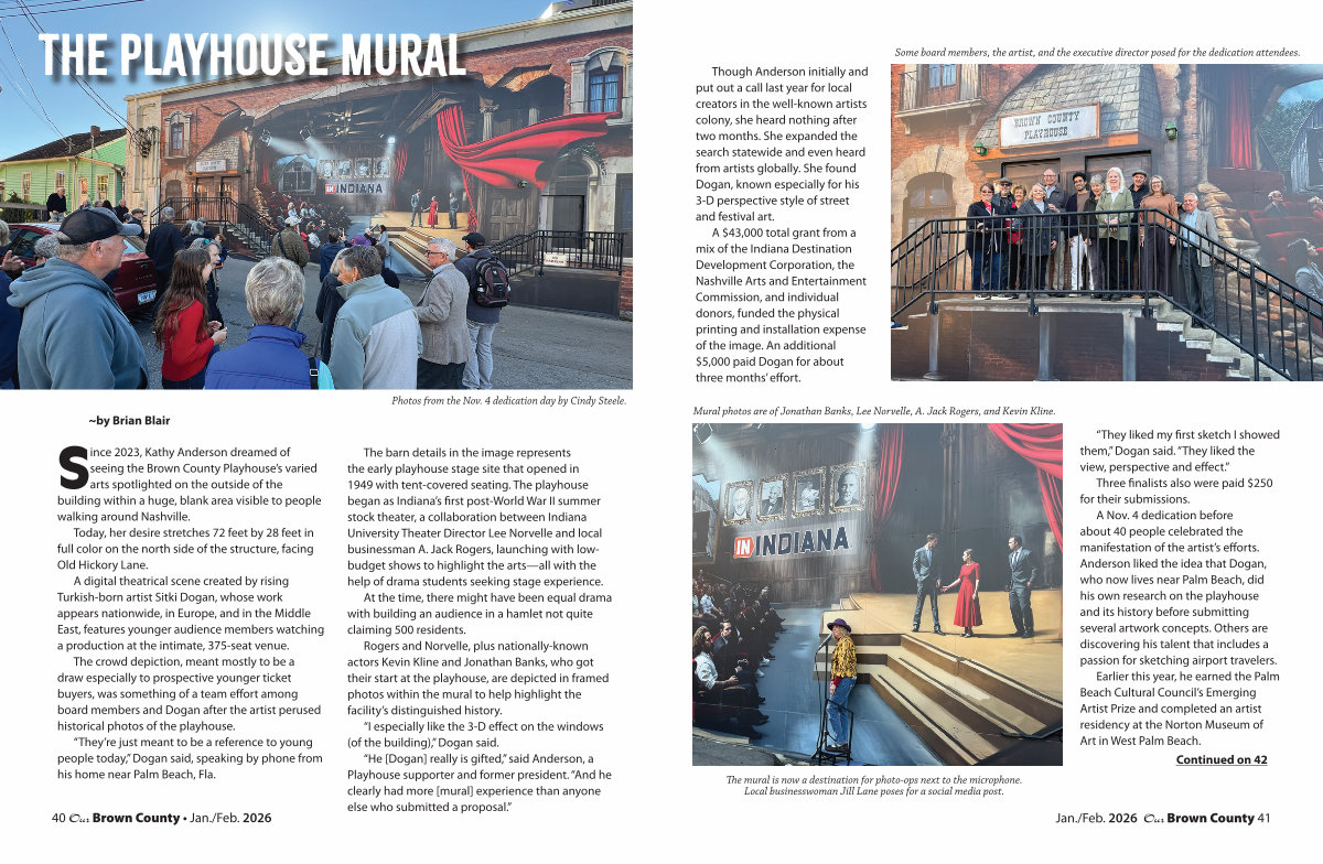 A Nov. 4 dedication before about 40 people celebrated the manifestation of the artist’ s efforts. Anderson liked the idea that Dogan, who now lives near Palm Beach, did his own research on the playhouse and its history before submitting several artwork concepts. Others are discovering his talent that includes a passion for sketching airport travelers.