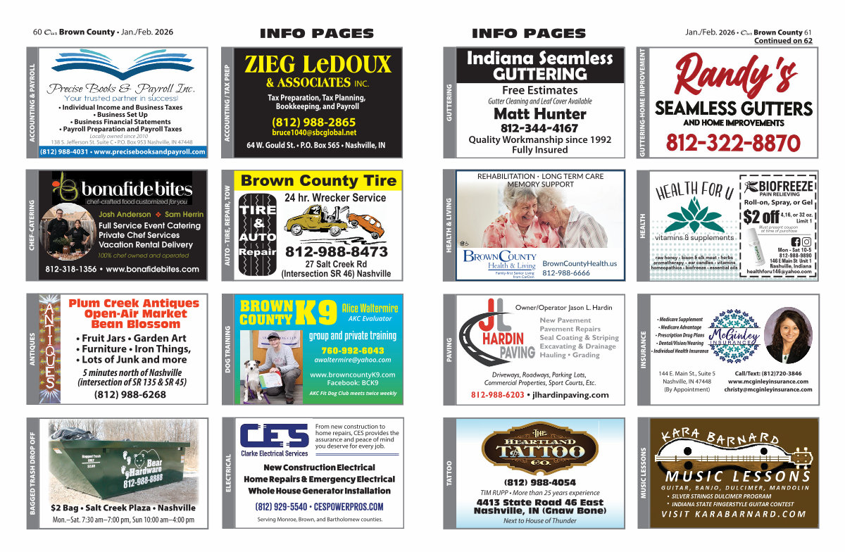 Jan./ Feb. 2026 • Our Brown County 61 Continued on 62 |