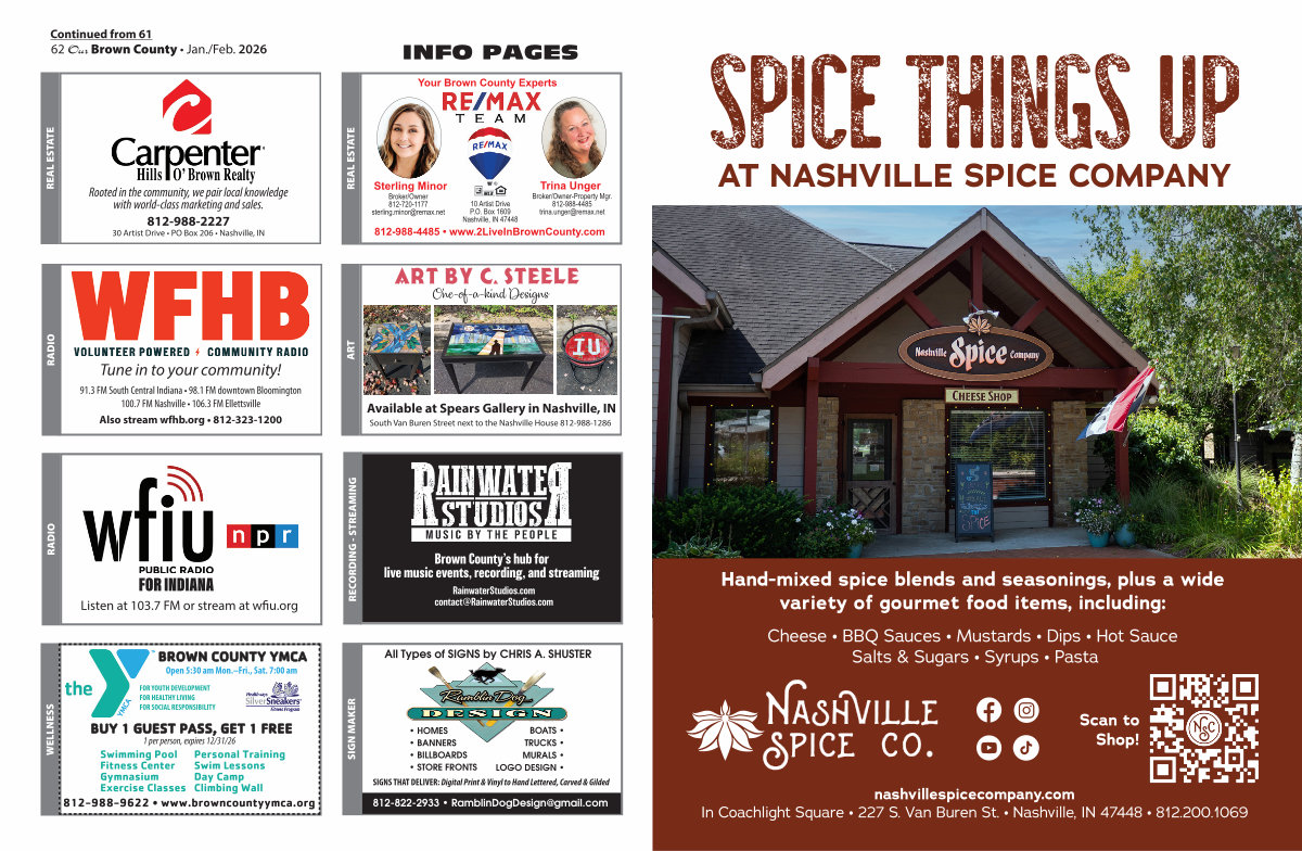 Scan to Shop! nashvillespicecompany. com In Coachlight Square • 227 S. Van Buren St. • Nashville, IN 47448 • 812.200.1069