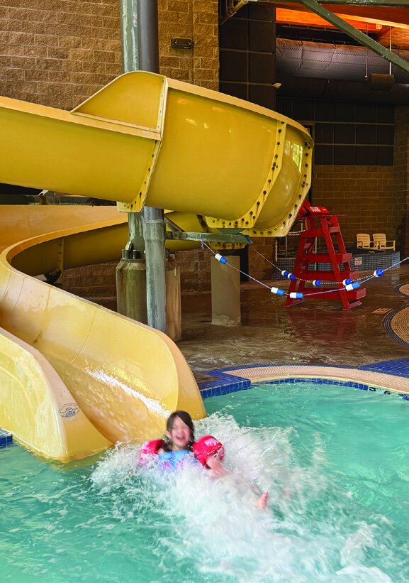 While the lodge itself is an attraction, the natural beauty of the park and nearby activities also draw visitors. McGee notes the park is just a few miles from Nashville, known for its arts and crafts, its shopping district, and sense of history. Located in Indiana’s largest state park, it’s also the largest lodge in the system. Abe Martin has 84 rooms in the lodge itself, plus family cabins, cabin suites, and rustic cabins. The lodge also features more than 6,000 square feet of banquet and conference rooms, wedding venues, an aquatic center, a restaurant, and gift shop. There are also outdoor spaces, a game room, lobby areas with fireplaces, and more. The lodge has up to 140 employees during peak seasons.