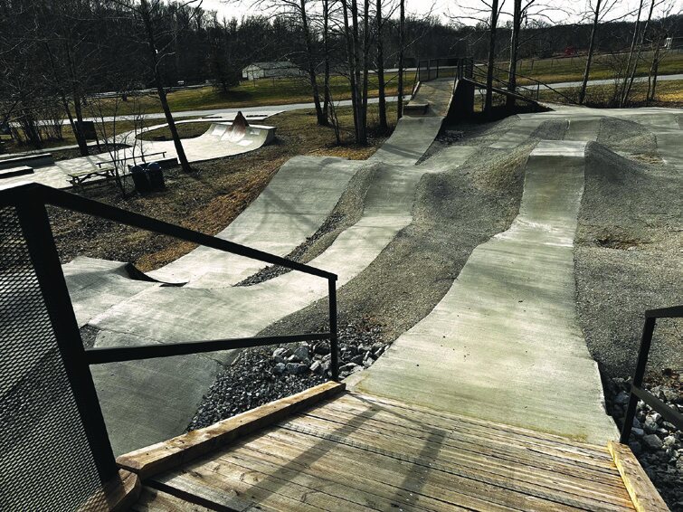 Nolan said that while a lot of tracks are made of black asphalt, the local track’s concrete surface makes it look more natural, increases durability and reduces maintenance costs. Some pump tracks also are made of dirt, she said, which can create ruts and drainage challenges.