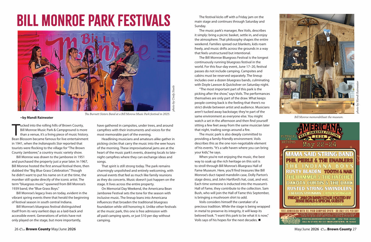 The Bill Monroe Bluegrass Festival is the longest continuously running bluegrass festival in the world. For this four-day event, June 17 – 20, festival passes do not include camping. Campsites and cabins must be reserved separately. The lineup includes over a dozen bluegrass bands, culminating with Doyle Lawson & Quicksilver on Saturday night.“ The most important part of this park is the picking after the show,” says Voils. The performances themselves are only part of the draw. What keeps people coming back is the feeling that there’ s no strict divide between artist and audience. Musicians aren’ t tucked away backstage; they’ re part of the same environment as everyone else. You might watch a set in the afternoon and then find yourself sitting a few feet away from the same musician later that night, trading songs around a fire.