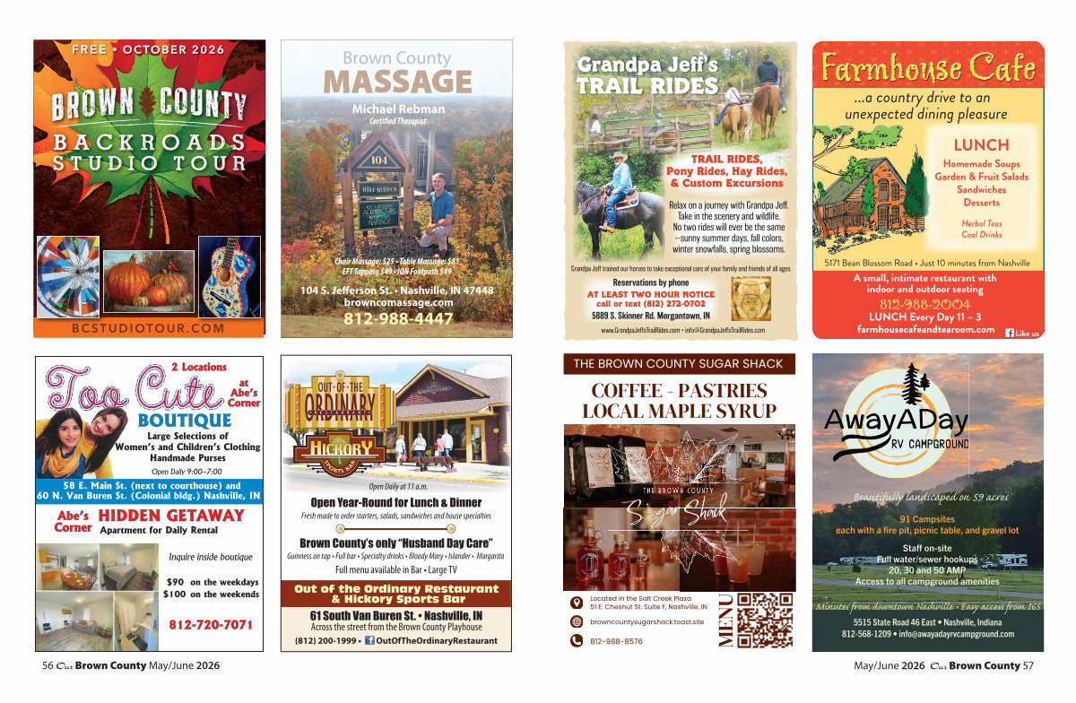 61 South Van Buren St. • Nashville, IN Across the street from the Brown County Playhouse