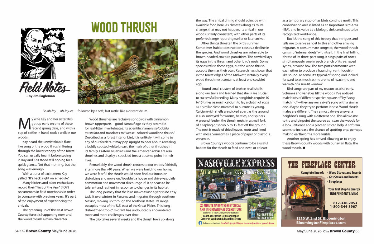 The greening up of this vast Brown County forest is happening now, and the wood thrush a main character.