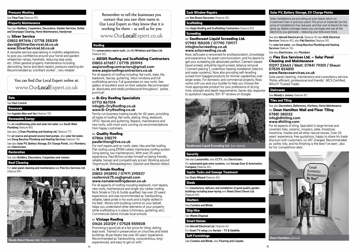 Sash Window Repairs see Ken Brown Decorator( feature 25). Scaffolding See Aegis Roofing and Scaffolding Contractors( feature 83). Screeding
