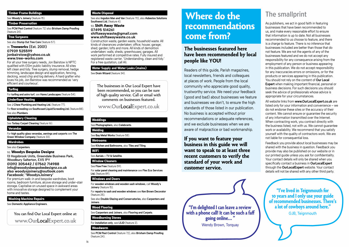 “ I’ ve lived in Teignmouth for 10 years and I only use your guide of recommended businesses. There’ s a lot of cowboys around here.”