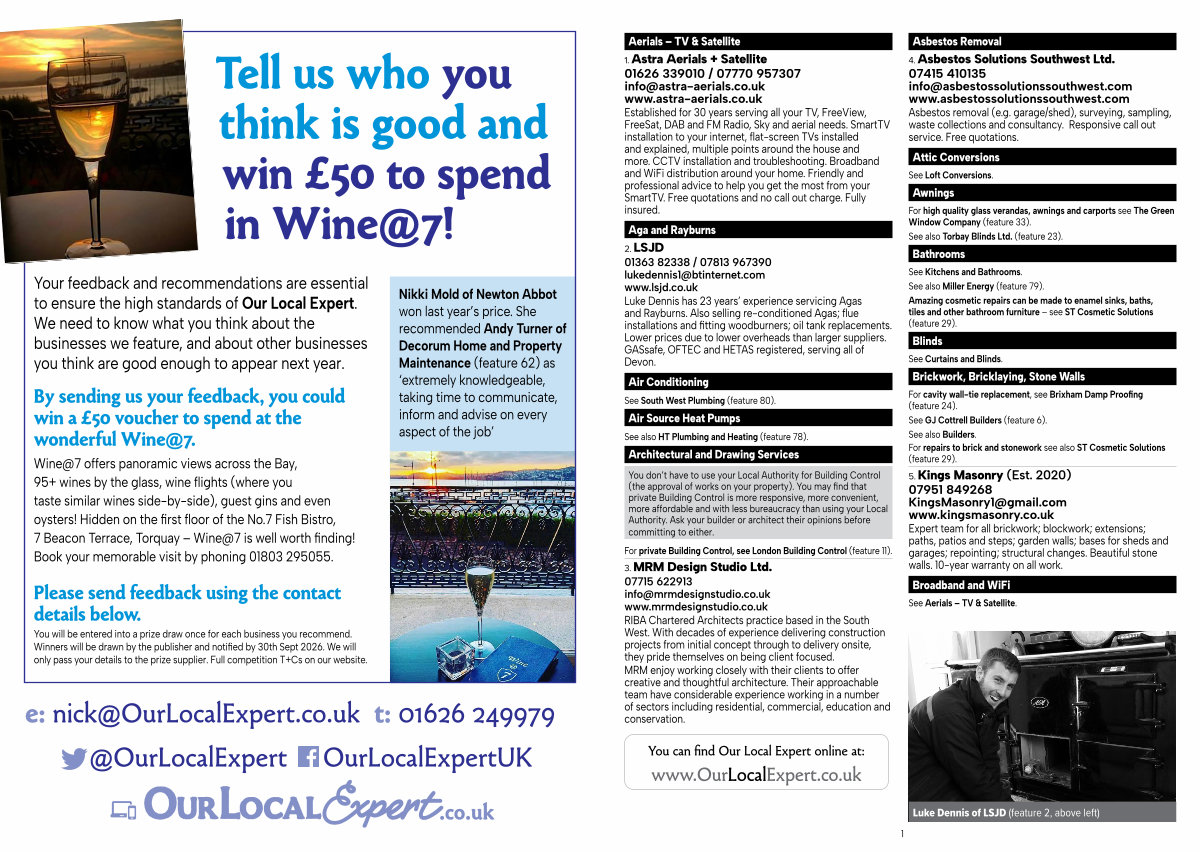 You can find Our Local Expert online at: www. OurLocalExpert. co. uk