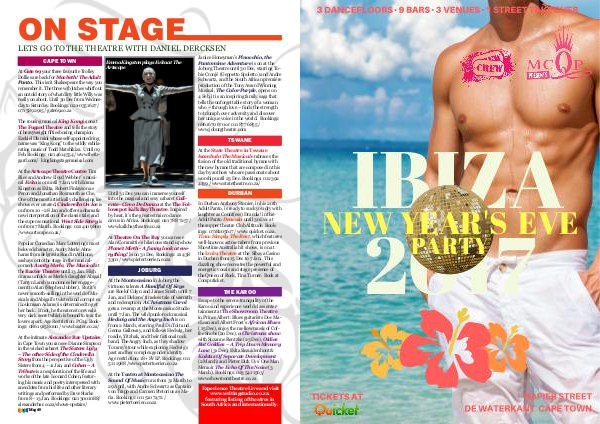 At the Montecasino in Joburg the virtuoso talents A Handful Of Keys are Roelof Colyn and James Smith until 7 Jan, and Dickens’ timeless tale of warmth and redemption, A Christmas Carol gets a revamp at the Montecasino Studio until 7 Jan. The wild punk-rock musical Hedwig and the Angry Inch is on from 2 March, starring Paul Du Toit and Genna Galloway, and follows Hedwig, her roadie, Yitzhak, and their fictional rock band, The Angry Inch, as they shadow Tommy’ s tour while exploring Hedwig’ s past and her complex gender identity. Age restriction: 18 + SVLP. Bookings: 011 511 1988 / www. pietertoerien. co. za