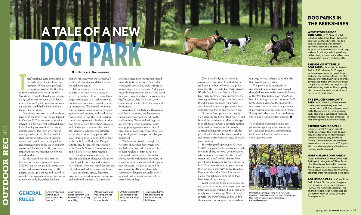 There’ s nothing quite as powerful as the dedication of animal lovers to their pets. When a group of eight strangers gathered for the first time in the Community Room of the West Stockbridge Town Hall to discuss bringing a dog park to our town, we didn’ t know exactly how we’ d get it done— but we knew for sure that we’ d find a way to make it happen for our dogs.