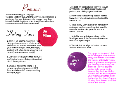 The page all about love. with the new year, valentines day is coming up. You kow thats when the boys go crazy. Read below to find flirting tips and his strategies on valentines day so you know how to deal with them.
