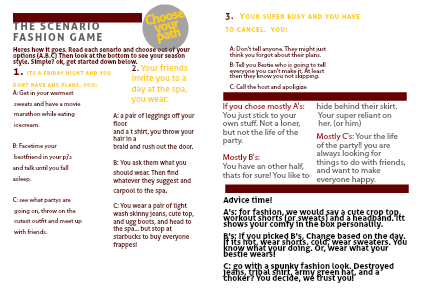 Heres how it goes. Read each senario and choose out of your options (A.B.C) Then look at the bottom to see your season style. Simple? ok, get started down below.