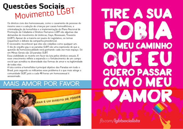 O dia do orgulho gay e as paradas GLBT são uma expressão de que a questão da homossexualidade está ganhando cada vez mais espaço. Só em Minas Gerais são 19 paradas GLBT.