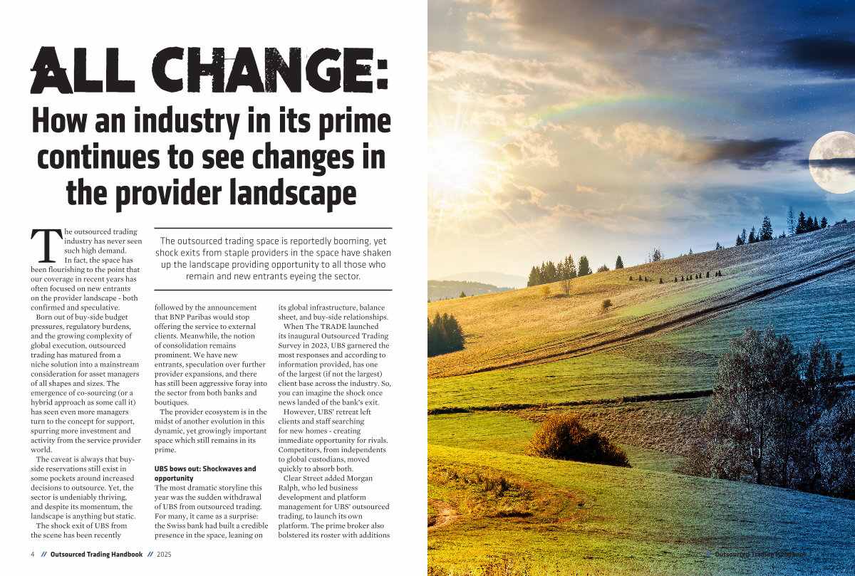 The outsourced trading space is reportedly booming, yet shock exits from staple providers in the space have shaken up the landscape providing opportunity to all those who remain and new entrants eyeing the sector.