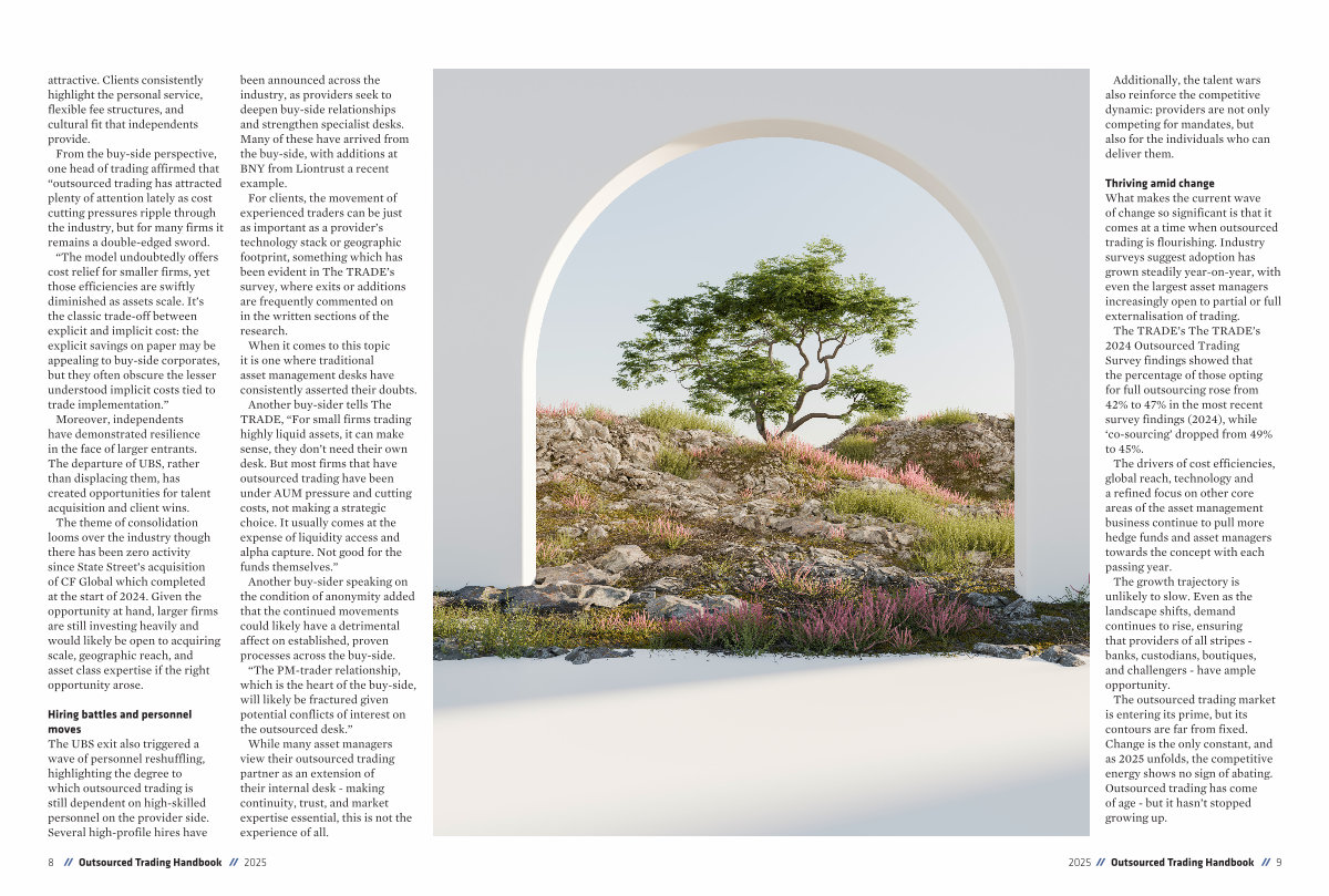 The outsourced trading market is entering its prime, but its contours are far from fixed. Change is the only constant, and as 2025 unfolds, the competitive energy shows no sign of abating. Outsourced trading has come of age- but it hasn’ t stopped growing up.