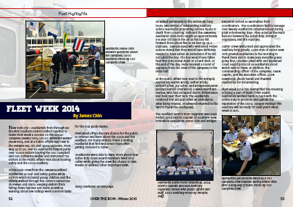 The Auxiliary event’s main organizer was Dave Porter, 2014 District Captain of Southern New York while Auxiliarists James Chin and Bridget Benjamin served as Manhattan field coordinators. The coordinators had to manage over twenty Auxiliarists simultaneously during peak volunteering days. They acted as the main liaisons between the active duty, Intrepid organizers, and the Auxiliary.