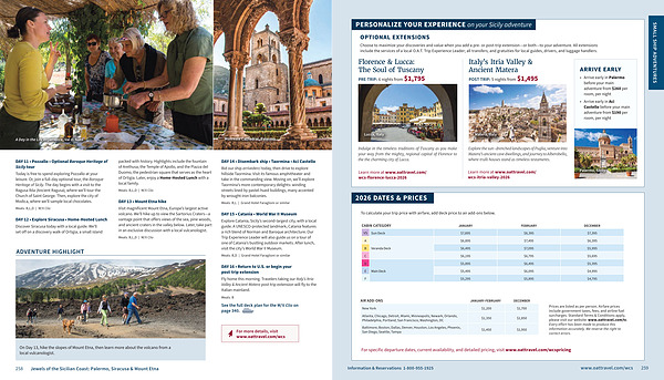 DAY 13 • Mount Etna hike Visit magnificent Mount Etna , Europe ’ s largest active volcano . We ’ ll hike up to view the Sartorius Craters — a vantage point that offers views of the sea , pine woods , and ancient craters in the valley below . Later , take part in an exclusive discussion with a local vulcanologist .