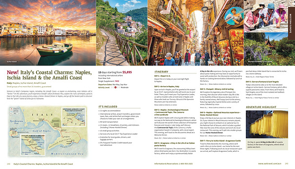 DAY 2 • Arrive in Naples, Italy Upon arrival in Naples, you’ ll be greeted at the airport by an O. A. T. representative who will assist you to your hotel. There, you’ ll meet your Trip Experience Leader, as well as travelers who arrived early in Naples and those who took our Tuscany, Abruzzo & the Apennine Mountains pre-trip extension.
