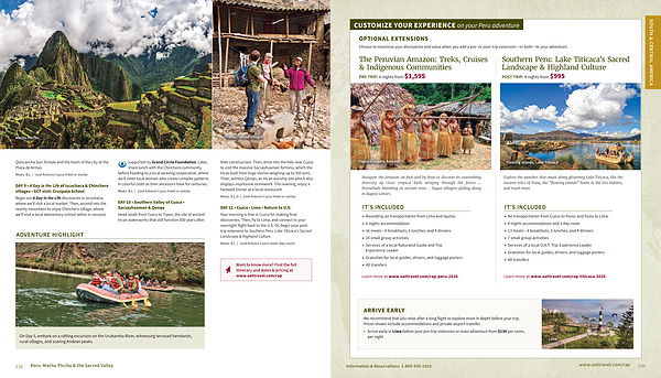 ADVENTURE HIGHLIGHT supported by Grand Circle Foundation. Later, share lunch with the Chinchero community before heading to a local weaving cooperative, where we’ ll meet local women who create complex patterns in colorful cloth as their ancestors have for centuries.