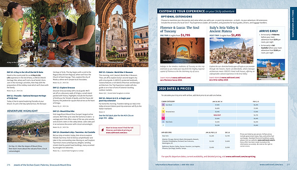 For specific departure dates, current availability, and detailed pricing, visit www. oattravel. com / wcspricing