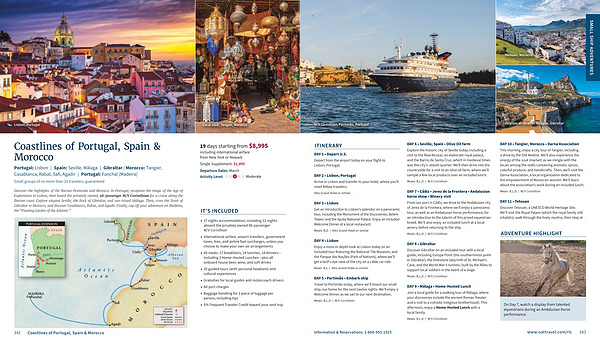 Discover the highlights of the Iberian Peninsula and Morocco. In Portugal, recapture the magic of the Age of Exploration in Lisbon, then board the privately owned, 98-passenger M / V Corinthian for a cruise along the Iberian coast. Explore elegant Seville, the Rock of Gibraltar, and sun-kissed Málaga. Then, cross the Strait of Gibraltar to Morocco, and discover Casablanca, Rabat, and Agadir. Finally, cap off your adventure on Madeira, the“ Floating Garden of the Atlantic.”