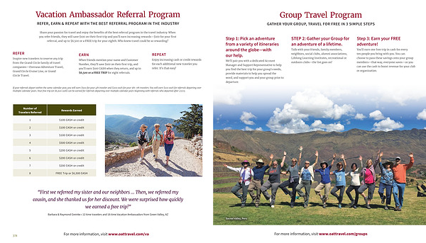 Inspire new travelers to reserve any trip from the Grand Circle family of travel companies— Overseas Adventure Travel, Grand Circle Cruise Line, or Grand Circle Travel.