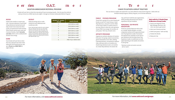 Travel with a group of 10 or more friends and family on any O . A . T . Small Group or Small Ship Adventure , and you ’ ll travel for FREE as the Group Leader ( 11 travelers total ). Or you may choose to share the cash equivalent of your FREE trip amongst the members of your group — that way , everyone saves .