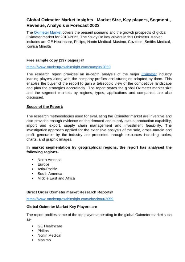 Oximeter market for 2018-2023. The Study On key drivers in this Oximeter Market