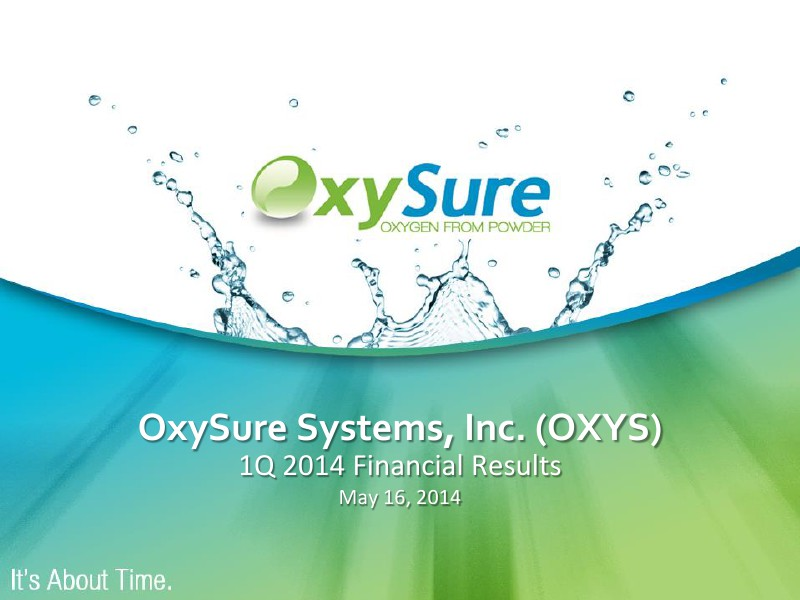 OxySure Systems, Inc. (OXYS) 1Q 2014 Financial Results May 16, 2014