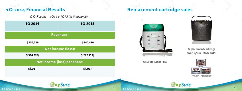 OxySure Earnings Presentation - 1Q2014 v2.pdf May. 2014 | Página 7